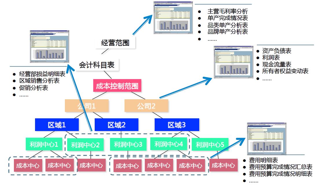 由于財(cái)務(wù)的控制規(guī)則前移,在開(kāi)展業(yè)務(wù)時(shí)已經(jīng)把后期財(cái)務(wù)需要的數(shù)據(jù)錄入到系統(tǒng),月結(jié)時(shí)財(cái)務(wù)報(bào)表的數(shù)據(jù)提取就不需要大量的人工錄入。同時(shí)SAP提供多維度的財(cái)務(wù)組織架構(gòu),能靈活給出所需的報(bào)表。