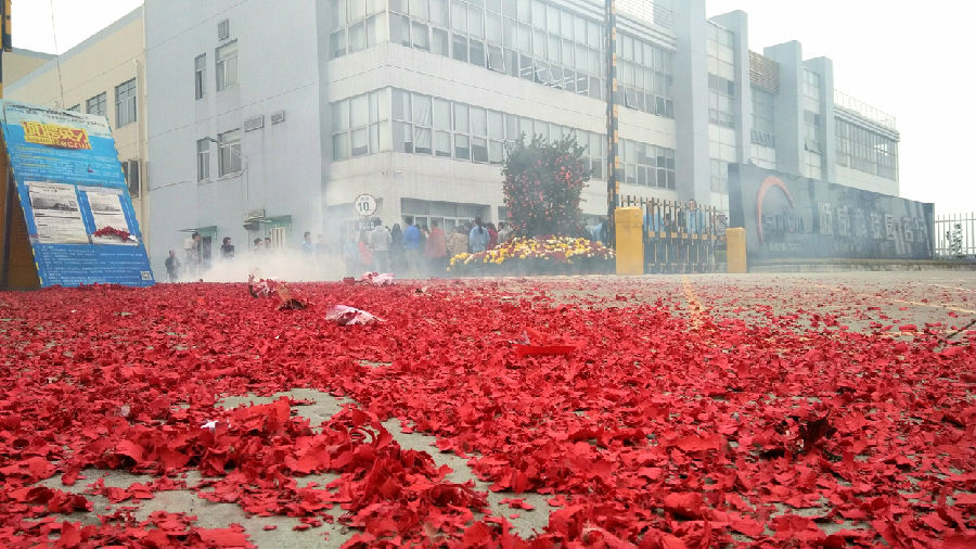 9點(diǎn)58分,自動(dòng)化裝備公司內(nèi),副總裁成再育先生點(diǎn)燃鞭炮;10點(diǎn)58分,杏壇科技園內(nèi),常務(wù)副總裁何偉先生點(diǎn)燃鞭炮。震耳欲聾的鞭炮聲中,員工們互相祝賀,感受著新年的喜悅,寄望新的一年工作順利。