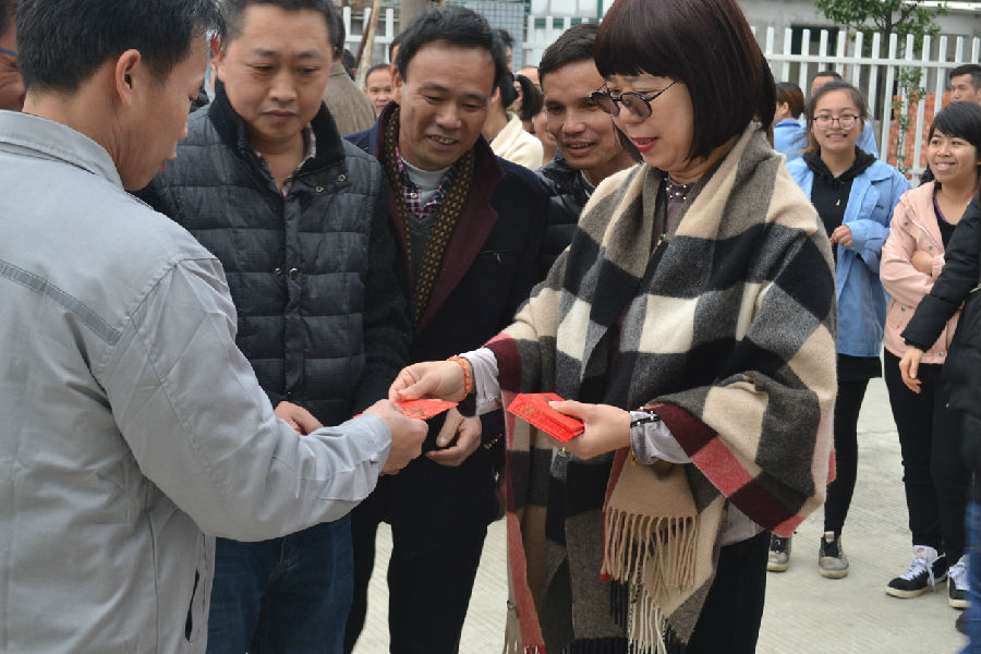 9點(diǎn)18分,是一個(gè)非常有意義的重要時(shí)刻,伴隨著總裁莫綺顏女士點(diǎn)燃鞭炮,開工儀式便拉開了序幕。鞭炮齊鳴兆祥瑞,開門利是博好彩!鞭響轟鳴,紅屑滿地,預(yù)示著順威股份在新的一年紅紅火火,大吉大利!同時(shí),公司給現(xiàn)場(chǎng)每位員工派發(fā)開工利是,祝愿大家在新的一年里工作順利,幸福健康!